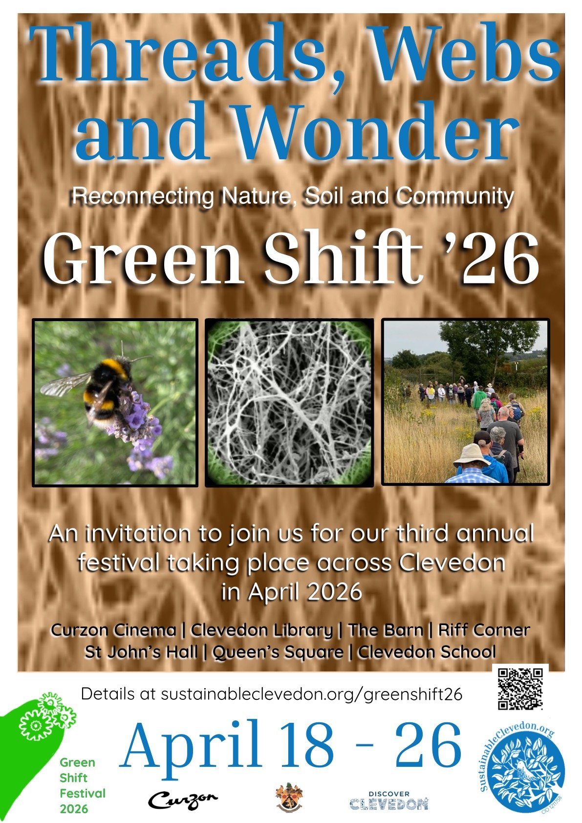 Little Green Frogs with guest presenter, Grace Hewson. In partnership with Clevedon Library’s Storytime session, Green Shift Festival will present stories, songs, rhymes for any children under school age on the theme of nature and any living things, with their parents/carers. 11.15-11..45, details via Library desk